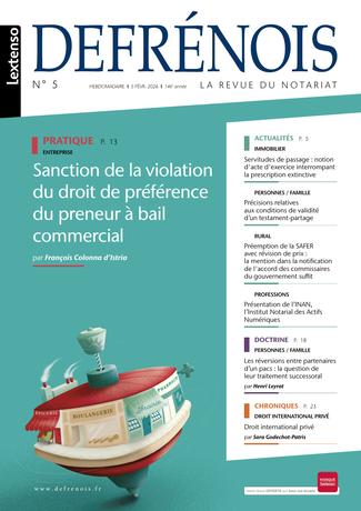 Chaque semaine (depuis le lancement de la nouvelle formule Hebdo le 7 septembre 2017), le Defrénois décrypte pour les professionnels du notariat les dernières évolutions législatives et jurisprudentielles dans tous leurs grands domaines d’expertise : ACTES COURANTS/IMMOBILIER - FAMILLE/PATRIMOINE - ENTREPRISE - FISCAL - PROFESSION - RURAL. À la fois revue d’information et revue scientifique de réflexion et d’imagination, le Defrénois a été repensé pour simplifier leur quotidien : appliquer de nouvelles règles et adopter de nouvelles pratiques dans de nouveaux contextes sociétaux.