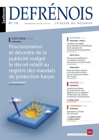 • Une Webformation Lextenso, en partenariat avec le Defrénois, sur Actualité du droit immobilier notarial, sous la direction scientifique de Michel Grimaldi et Christophe Vernières, se tiendra le...