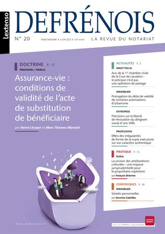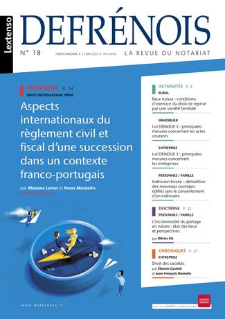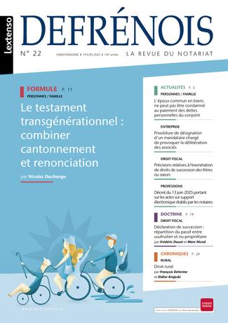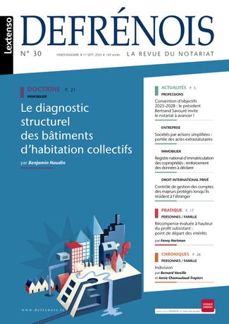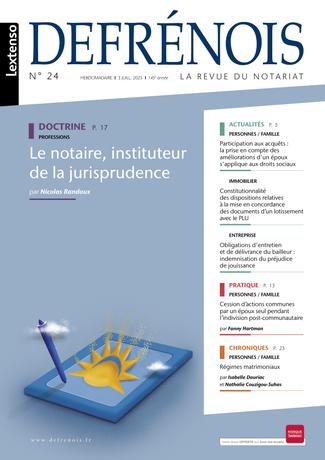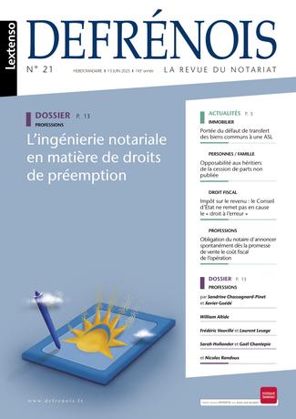 Chaque semaine (depuis le lancement de la nouvelle formule Hebdo le 7 septembre 2017), le Defrénois décrypte pour les professionnels du notariat les dernières évolutions législatives et jurisprudentielles dans tous leurs grands domaines d’expertise : ACTES COURANTS/IMMOBILIER - FAMILLE/PATRIMOINE - ENTREPRISE - FISCAL - PROFESSION - RURAL. À la fois revue d’information et revue scientifique de réflexion et d’imagination, le Defrénois a été repensé pour simplifier leur quotidien : appliquer de nouvelles règles et adopter de nouvelles pratiques dans de nouveaux contextes sociétaux.