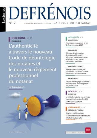 Dans un précédent article publié en février 2025 (DEF 20 févr. 2025, n° DEF224h9), Me Jean Auvolat, notaire à Craponne et fondateur de la Fondation Les Notaires Engagés du Rhône, nous avait expliqué...