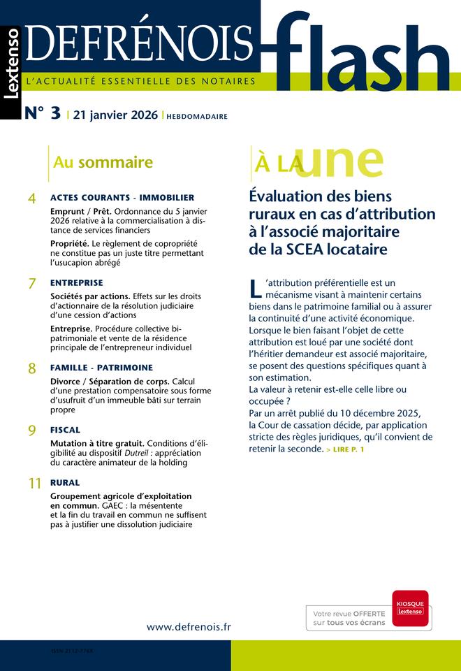 Complément indispensable du Defrénois, le flash offre chaque semaine aux professionnels du notariat et aux praticiens proches de cet univers un accès direct aux informations prioritaires qu’ils doivent maîtriser dans leur exercice quotidien. Mise en perspective et « contextualisée », l’actualité essentielle est dans le flash.