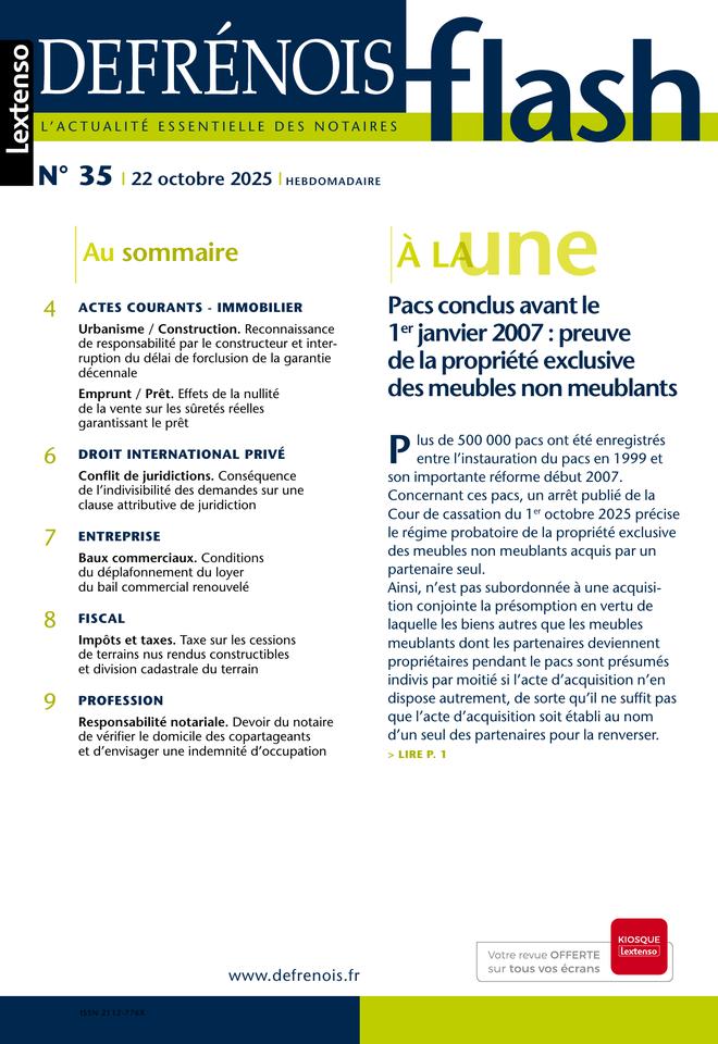 Complément indispensable du Defrénois, le flash offre chaque semaine aux professionnels du notariat et aux praticiens proches de cet univers un accès direct aux informations prioritaires qu’ils doivent maîtriser dans leur exercice quotidien. Mise en perspective et « contextualisée », l’actualité essentielle est dans le flash.