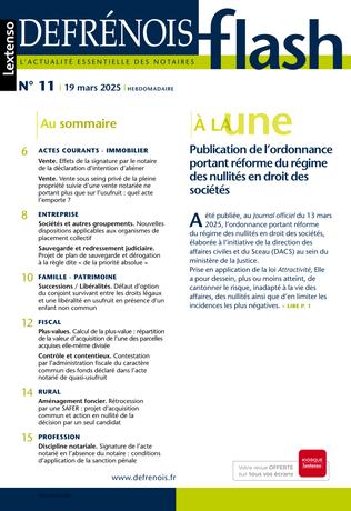Complément indispensable du Defrénois, le flash offre chaque semaine aux professionnels du notariat et aux praticiens proches de cet univers un accès direct aux informations prioritaires qu’ils doivent maîtriser dans leur exercice quotidien. Mise en perspective et « contextualisée », l’actualité essentielle est dans le flash.