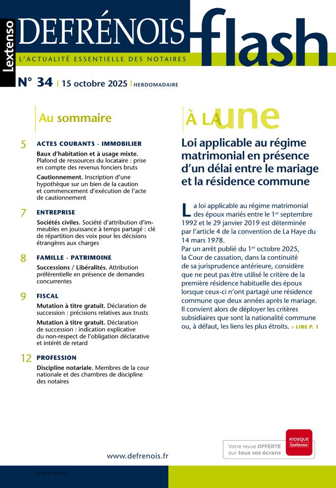 Complément indispensable du Defrénois, le flash offre chaque semaine aux professionnels du notariat et aux praticiens proches de cet univers un accès direct aux informations prioritaires qu’ils doivent maîtriser dans leur exercice quotidien. Mise en perspective et « contextualisée », l’actualité essentielle est dans le flash.