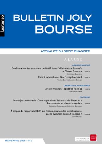 Le Bulletin JOLY Bourse vous offre chaque mois une veille exhaustive de toute l’actualité tant législative que réglementaire du droit financier (Autorités de supervision - Information du public - Prestataires - Techniques et produits financiers - Gestion d’actifs et titrisation - Opérations financières - Conformité et blanchiment des capitaux - Infrastructures de marché - Gouvernance des sociétés cotées).