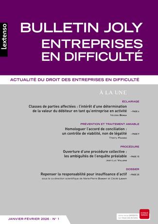Tous les deux mois, retrouvez une analyse fouillée et pratique de l'actualité jurisprudentielle et législative du droit des entreprises en difficulté (Prévention et traitement amiable - Ouverture et extension des procédures collectives – Sauvegarde et redressement judiciaire - Liquidation judiciaire – Créanciers et propriétaires - Droit processuel - Période suspecte, responsabilités et sanctions - Droit social et fiscal - Règlement européen et autres sources – Débiteur personne physique), rédigée par les meilleurs spécialistes de la matière, tant universitaires que praticiens.