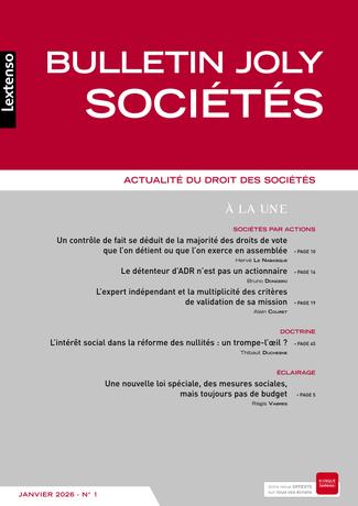 Le Bulletin Joly Sociétés assure chaque mois une veille de toute l'actualité jurisprudentielle et législative du droit des sociétés (Droit commun - Sociétés par actions - Sociétés de personnes et autres groupements - Audit et contrôle des comptes - Fusions acquisitions - Restructuration des sociétés en difficulté).