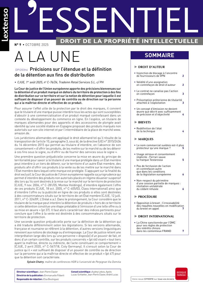 La Cour de justice de l’Union européenne apporte des précisions bienvenues sur la détention d’un produit marqué en dehors du territoire de protection à des fins de distribution sur ce territoire et...