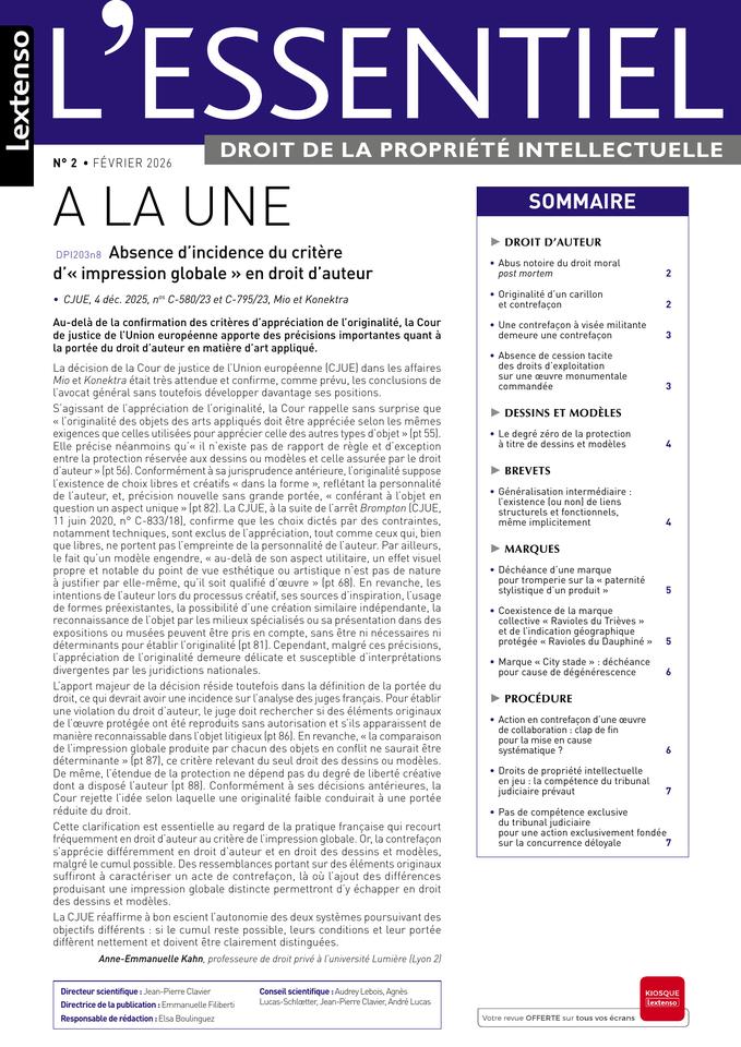 Absence d’incidence du critère d’« impression globale » en droit d’auteur