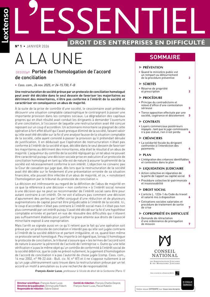 L'ESSENTIEL Droit des Entreprises en Difficulté
