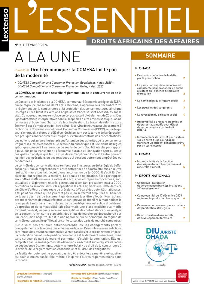 La COMESA se dote d’une nouvelle réglementation de la concurrence et de la consommation. COMESA Competition and Consumer Protection Regulations, 4 déc. 2025 COMESA Competition and Consumer Protection...