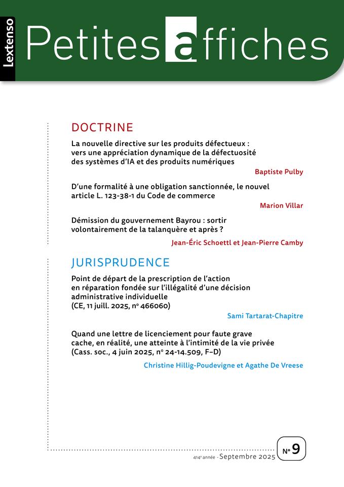 La nouvelle directive sur les produits défectueux : vers une appréciation dynamique de la défectuosité des systèmes d’IA et des produits numériques