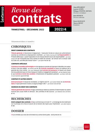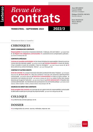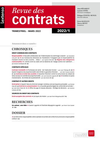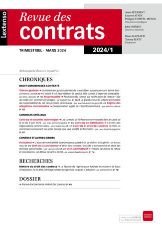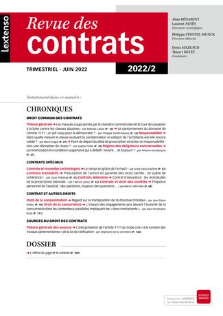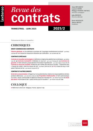 La Revue des contrats est aujourd’hui si bien installée dans le paysage juridique et éditorial français que l’on oublierait presque qu’il s’agit d’une publication relativement jeune, du moins si on la...